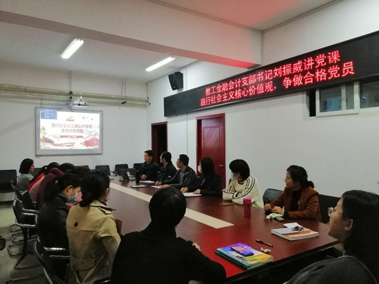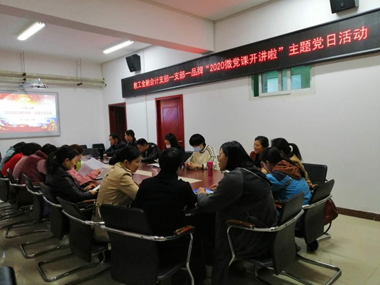 为深入开展“一支部一品牌”建设活动,强化支部建设、凝聚支部力量,夯实党员思想政治教育,强化党员理想信念教育,10月27日下午,教工金融会计支部在SY5412党员会议室开展“一支部一品牌” “党建+微党课”“2020微党课开讲啦”主题党日活动,全体教工党员参加。活动由支部书记刘振威主持。