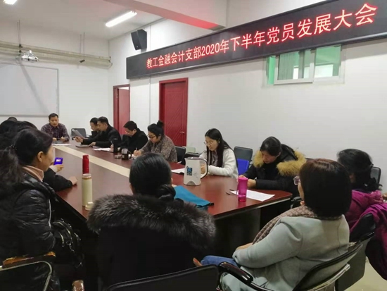 2020128日下午,教工金融会计支部在SY5412会议室召开2020年下半年党员发展大会,讨论审议接收张玓、魏晓慧两位同志为中共预备党员的相关事宜,全体教工党员参加。会议由支部书记刘振威主持。