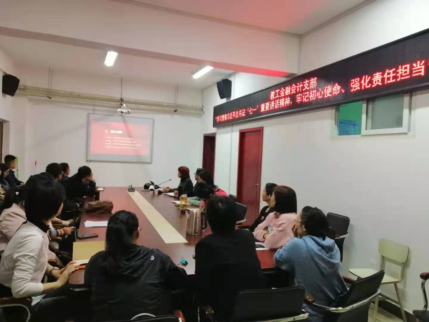 930日下午,教工金融会计党支部在SY5412党员会议室举行“学习贯彻习近平总书记‘七一’重要讲话精神,牢记初心使命、强化责任担当”主题党日活动,全体教工党员参加。活动由支部书记刘振威主持。