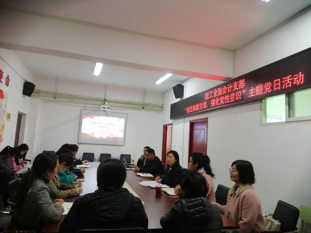 为进一步增强党员党性意识,充分发挥党员先锋模范和表率作用,10月26日下午,教工金融会计支部在SY5412会议室举行“规范佩戴党员徽章 强化党性意识”主题党日活动,全体教工党员参加。活动由支部书记刘振威主持。
