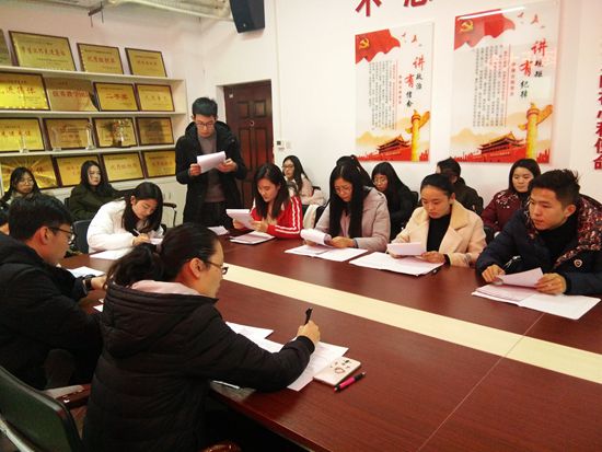 12月12日中午,财经系学生党支部在SY5412党员会议室召开预备党员转正大会,参加会议的有系学生党支部书记郝瑶、学生党支部宣传委员李灿、15级学生党支部介绍人杨宁以及全体党员、预备党员,会议由郝瑶同志主持。