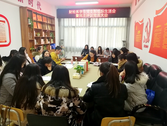 为深入推进“两学一做”学习教育常态化制度化,更好的发挥基层党组织战斗堡垒作用和党员先锋模范作用,1月8日下午,财经系学生党支部在5407党员活动室召开组织生活会暨民主评议党员大会,会议由支部书记郝瑶主持,财经系全体学生党员参加会议。