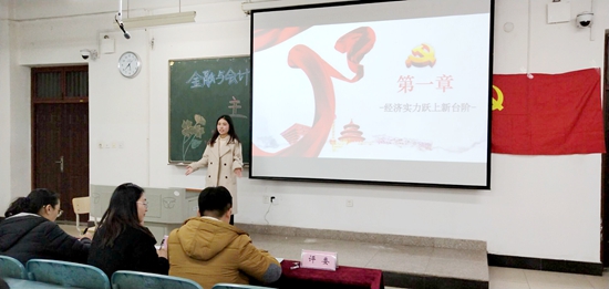 为深入学习贯彻习近平新时代中国特色社会主义思想和党的十九大精神,创新党员教育形式,提升党员教育培训效果,金融与会计学院学生党支部于2018年11月27日下午在Jx4303举办了“不忘初心、牢记使命”为主题的微党课大赛,学生支部书记郝瑶担任比赛评委。