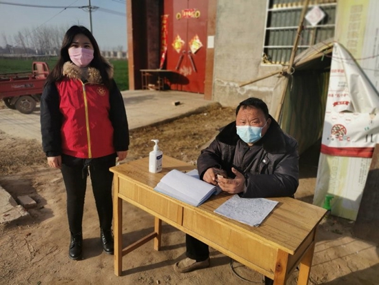 会计1703班李鑫月(左一)在村委会执勤点进行志愿服务活动