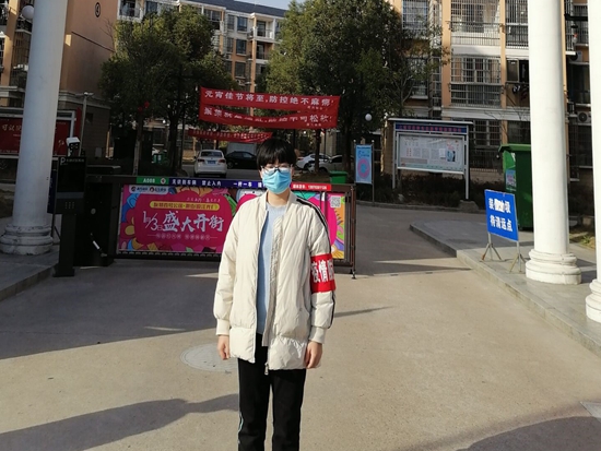 注会1701班葛咏,中共预备党员,家住河南省兰考县城关镇。疫情防控期间,葛咏第一时间投身战,主动参加兰考县名苑小区防疫志愿服务。根据社区统一安排,在执勤点检查外出居民的口罩佩戴情况,询问来往人员的去向,做好人员体温测量并进行往返登记,对过往的车辆进行登记消毒等,葛咏在工作期间态度谦和,工作认真,用实际行动诠释了党员的使命与担当,为社区防疫贡献了青春力量。