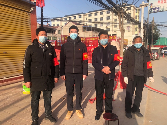 注会1801班姚群飞(左二)在疫情防控执勤点执勤