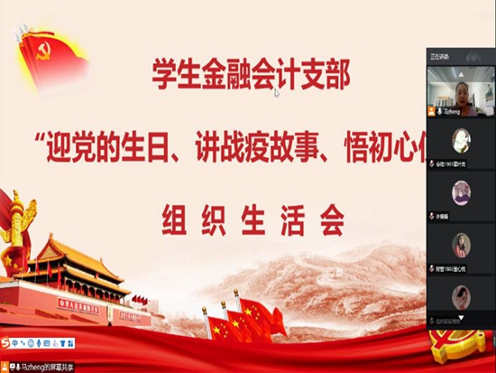 6月27日上午,学生金融会计支部以网络视频会议形式召开“迎党的生日、讲战疫故事、悟初心使命”迎七一组织生活会,支部全体师生党员参加。会议由支部书记马峥主持。