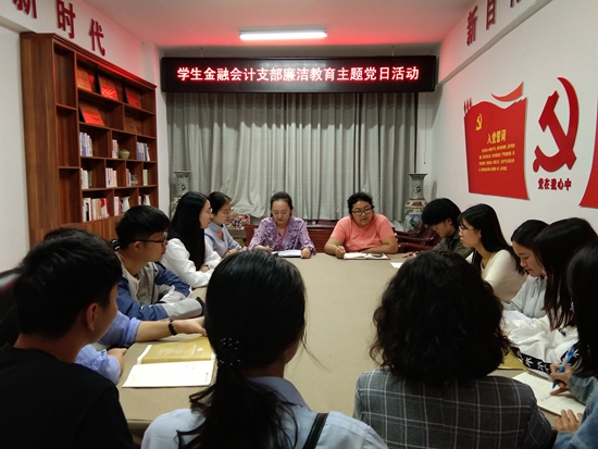 为加强学生党员党风廉政建设,9月29日下午,学生金融会计支部在SY5407党员活动室召开廉洁教育主题党日活动,党总支副书记胡晓慧及支部全体师生党员参加。活动由支部书记马峥主持。