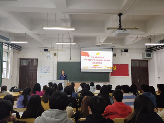 10月29日上午,学生金融会计支部在SY6102教室召开“学习中国共产党第十九届五中全会精神”主题党日活动,支部全体党员参加,2020年下半年发展对象及入党积极分子列席会议。活动由党支部书记马峥主持。