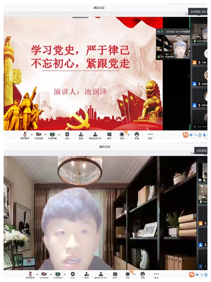 党员发展对象池润泽深情讲述了党的各个发展阶段的优秀党员的事迹,号召同学们认真学习党史,学习党员先烈的革命精神。
