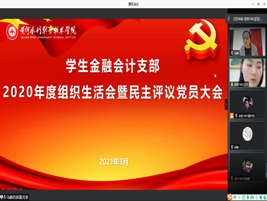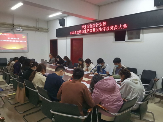 3月26日晚,学生金融会计支部在SY5412党员会议室召开2020年度组织生活会暨民主评议党员大会,支部全体党员参加,会议由支部书记马峥主持。