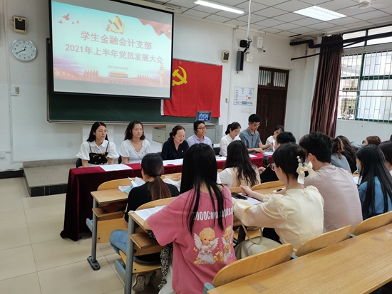 5月25日中午,金融与会计学院学生金融会计支部在JX6101教室召开2021上半年党员发展大会,支部全体师生党员、党员发展对象参加,会议由支部书记马峥主持。