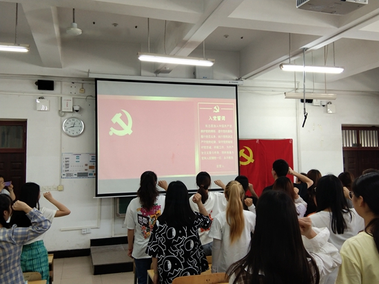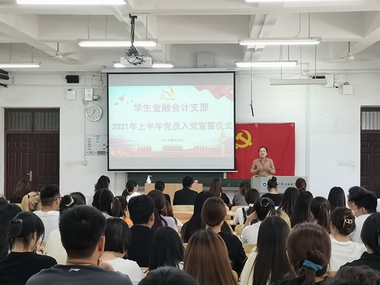 5月26日中午,金融与会计学院学生金融会计支部在SY2101教室举行2021上半年入党宣誓仪式暨老党员重温入党誓词活动,支部全体党员参加。仪式由支部书记马峥主持。