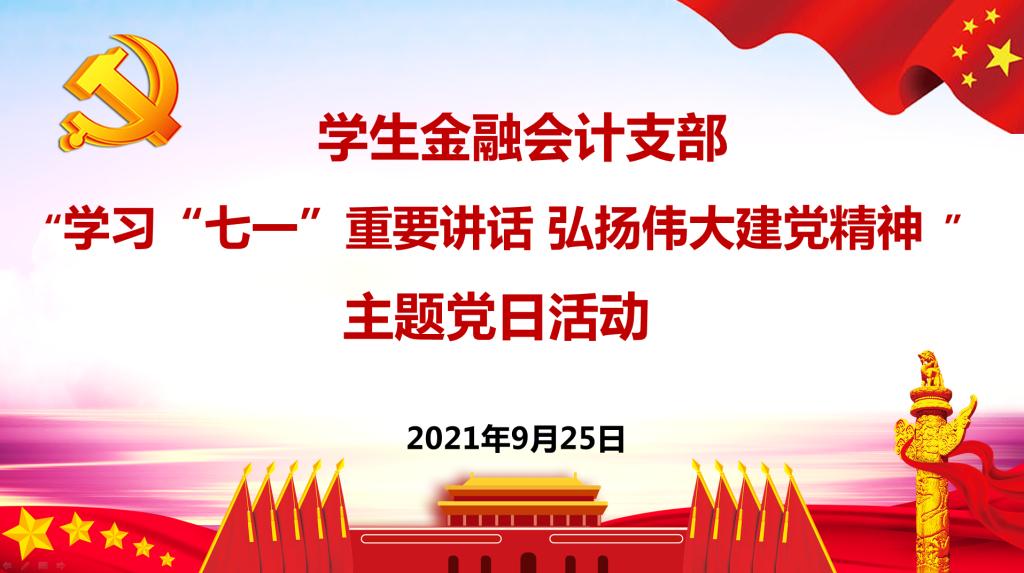 9月25日晚,学生金融会计党支部线上开展“学习‘七一’重要讲话 弘扬伟大建党精神”主题党日活动,全体党员参加。活动由支部书记马峥主持。