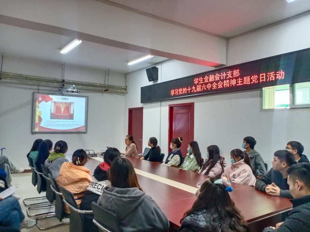 11月30日中午,学生金融会计支部在SY5412会议室召开召开“学习党的十九届六中全会精神”主题党日活动,支部全体党员参加活动,活动由支部书记马峥主持。