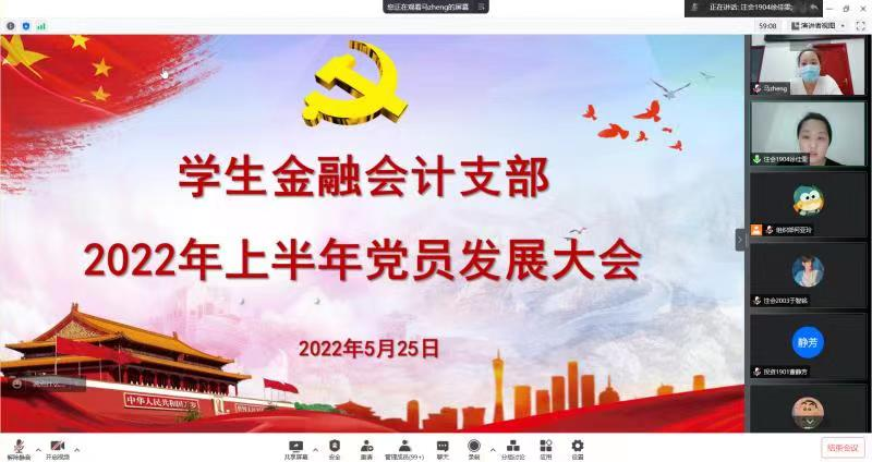 2022年5月25日下午,金融与会计学院学生金融会计支部在SY5410会议室召开2022上半年党员发展大会,支部全体师生党员、党员发展对象参加,会议由支部书记马峥主持。