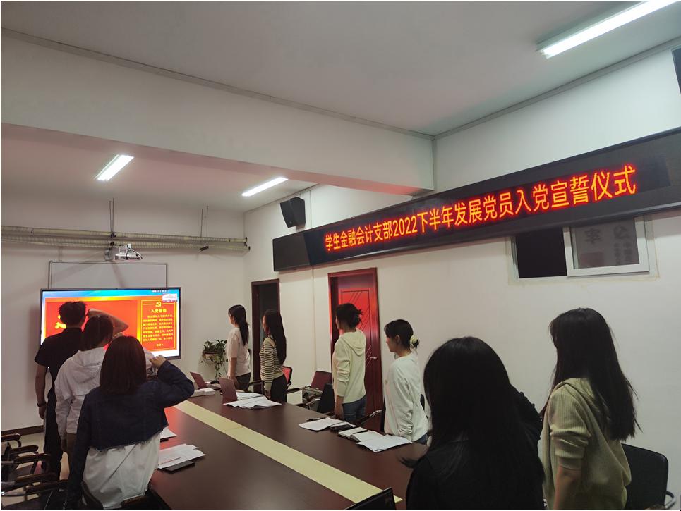 3月10日晚,学生金融会计支部在SY5412会议室举行2022年下半年发展党员入党宣誓仪式,支部全体党员参加会议,仪式由支部书记马峥主持。