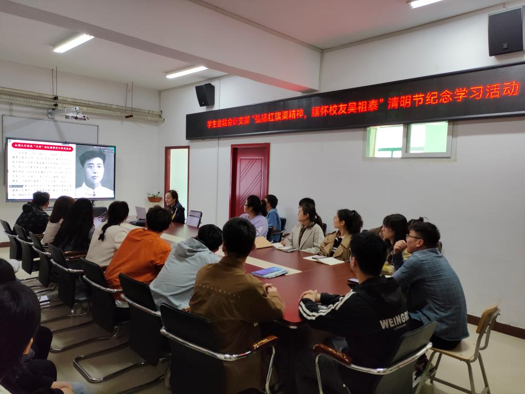 为深入学习宣传贯彻党的二十大精神和习近平总书记在红旗渠考察时的重要讲话精神,践行红旗渠精神,3月31日中午,在清明节来临之际,金融与会计学院举行“弘扬红旗渠精神 缅怀校友吴祖泰”清明节纪念学习活动,学生金融会计支部师生党员、学生代表参加活动。活动由学生金融会计支部书记马峥主持。
