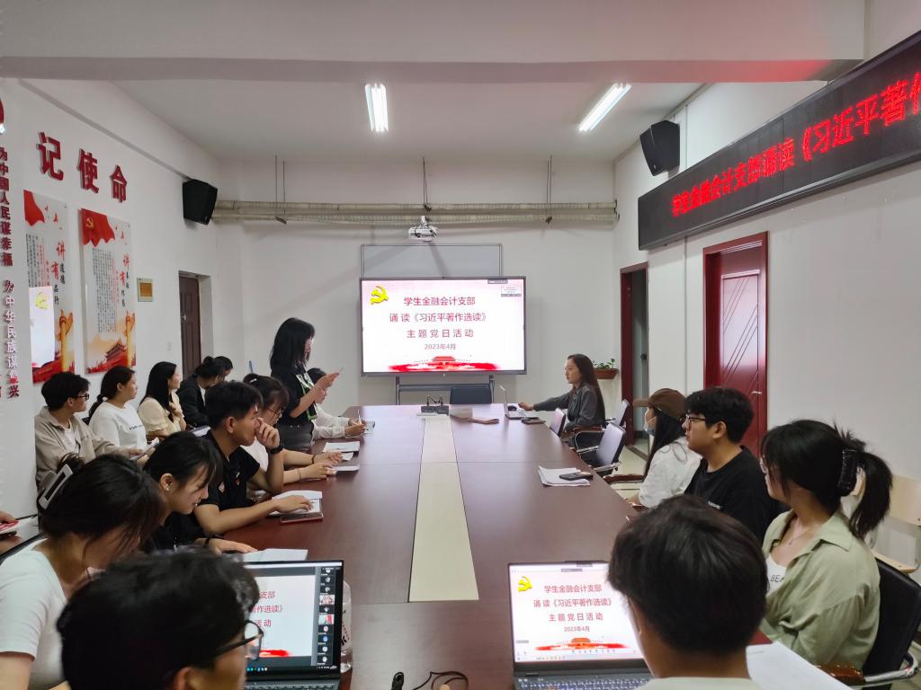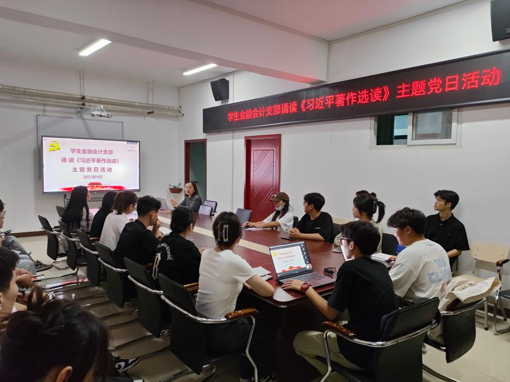 4月28日晚,金融与会计学院党总支学生金融会计支部在SY5412会议室召开诵读《习近平著作选读》主题党日活动,支部全体师生党员参会。活动由支部书记马峥主持。