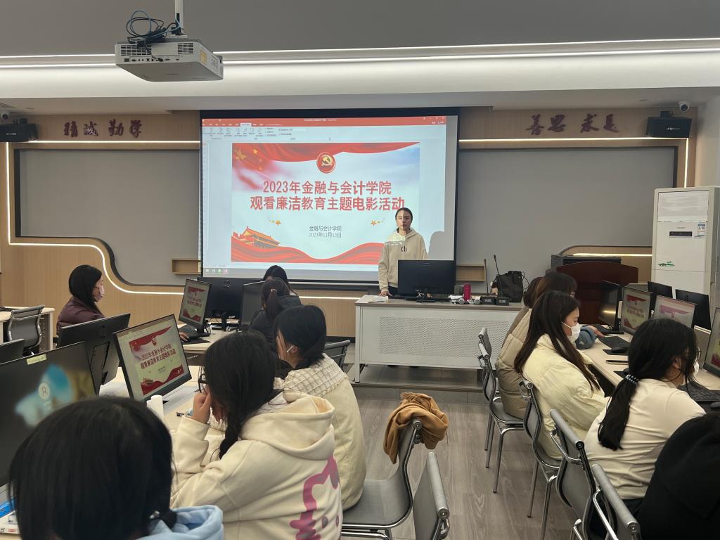 为进一步加强学生的廉洁教育,树牢自律规矩意识,11月13日,金融与会计学院组织2023级新生观看廉洁教育主题电影《反贪风暴3》,活动由院党总支兼职纪检委员千子贻主持。