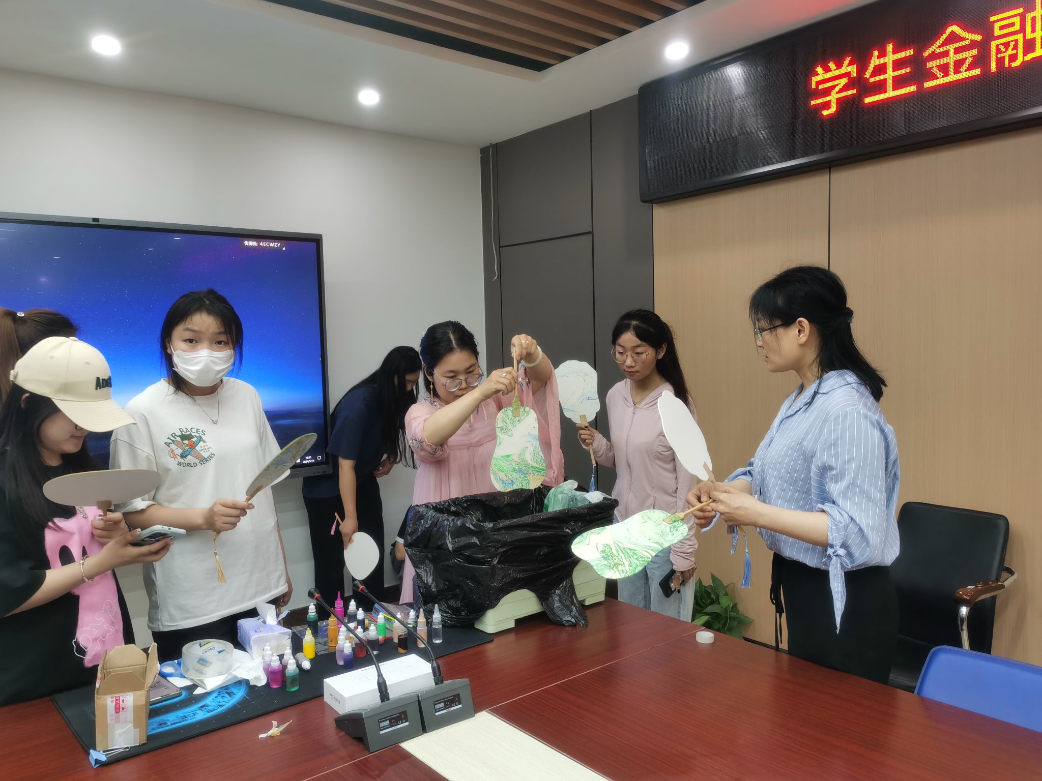 活动开始,支部书记马峥介绍本次“传统文化进校园”主题党日活动的内容为制作漆扇。活动邀请漆扇制作老师向大家讲解漆扇的历史来源和制作方法,师生党员代表在老师的带领下动手制作漆扇,通过老师对漆扇颜料调配与制作工序的现场指导,师生党员们成功制作出一把把美轮美奂、色彩明艳的漆扇,让大家近距离感受到非遗文化的独特魅力。