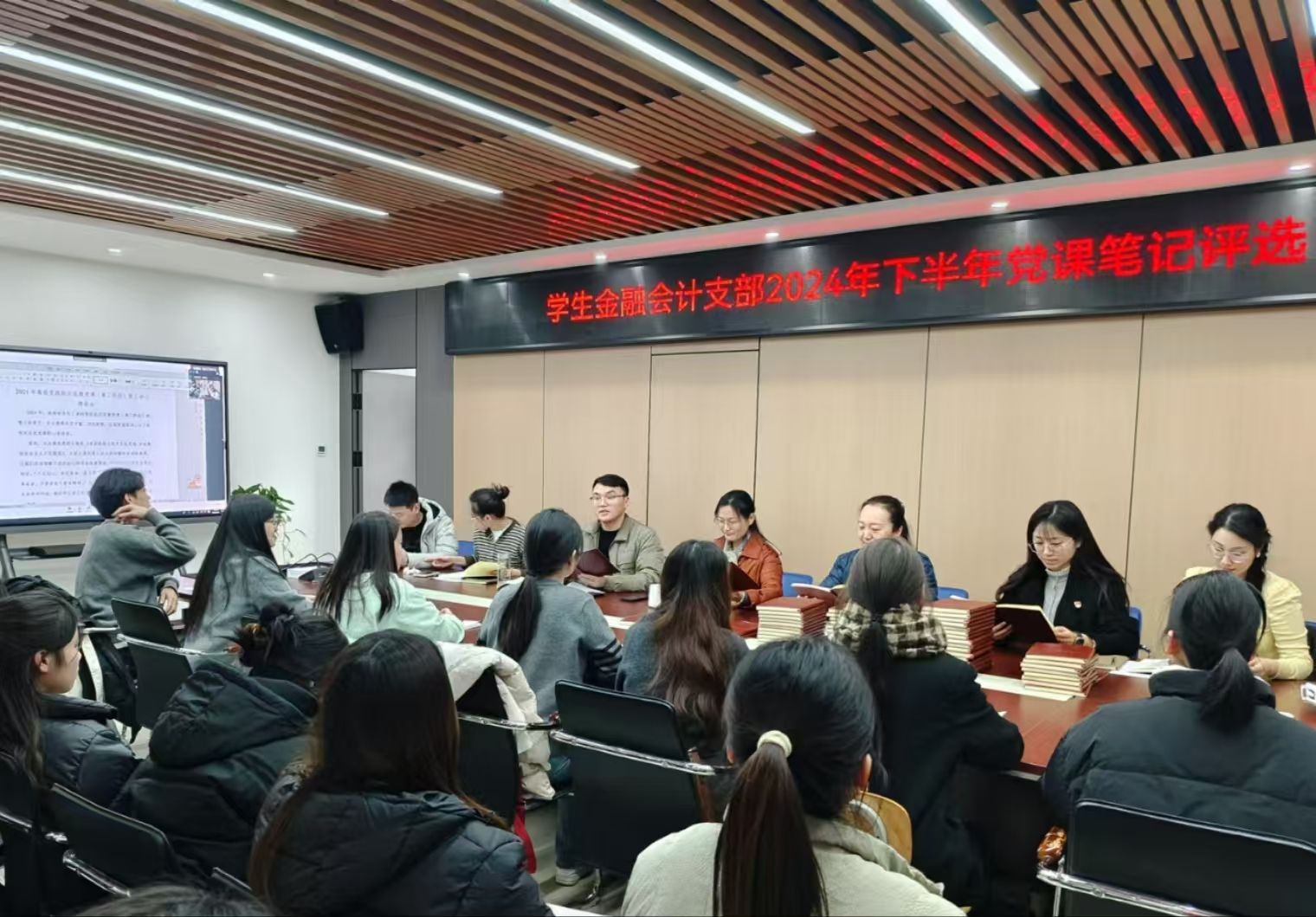 12月4日中午,学生金融会计支部在SY5412会议室开展2024年下半年党课学习笔记评选活动,支部师生党员、发展对象、入党积极分子代表参加此次活动,活动由支部书记马峥主持。