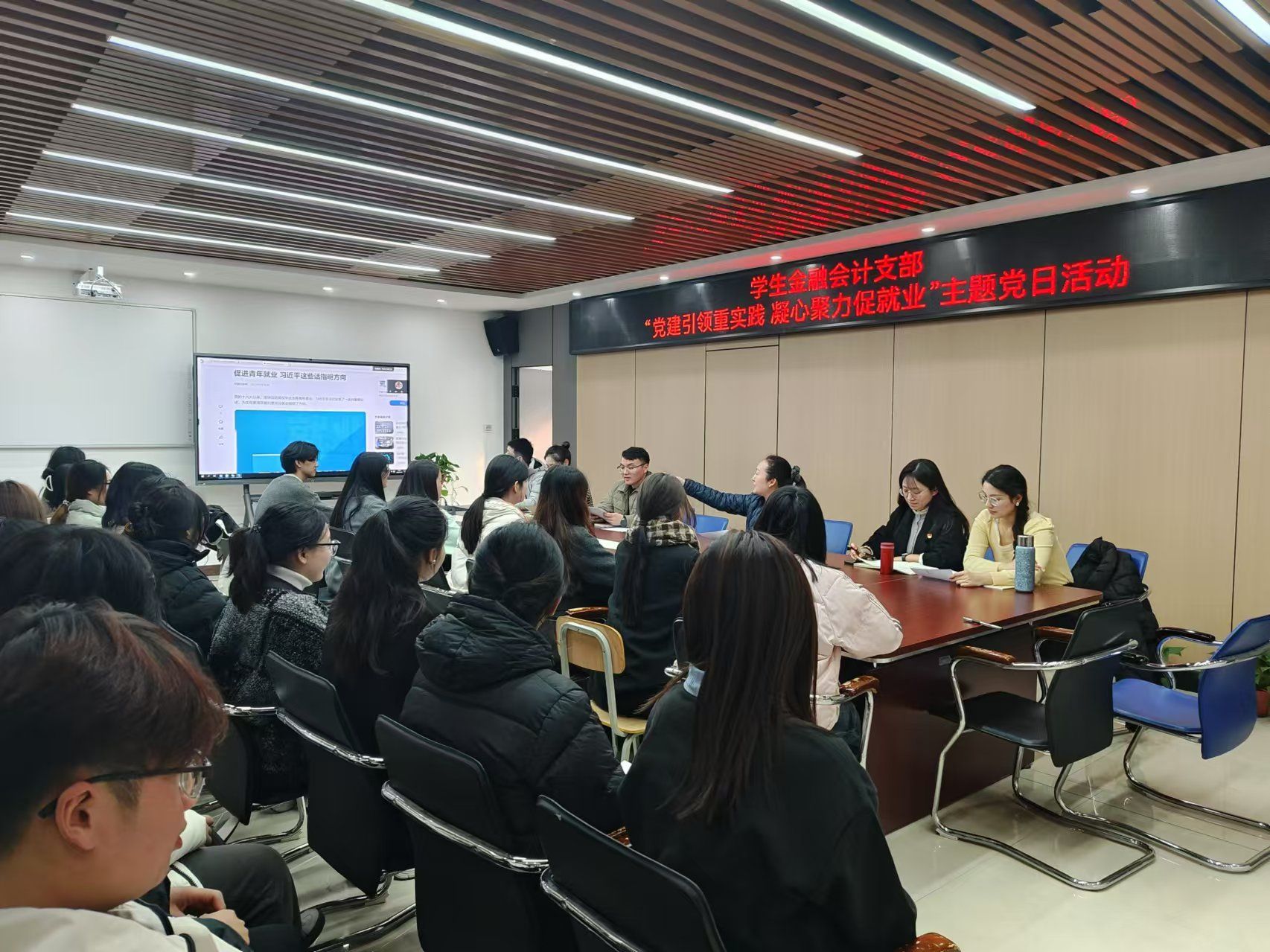 为进一步发挥党建引领作用,帮助学生更好地面对就业挑战,实现高质量就业。12月4日中午,学生金融会计支部在SY5412会议室召开“党建引领重实践,凝心聚力促就业”主题党日活动,支部全体党员参加,活动由支部书记马峥主持。