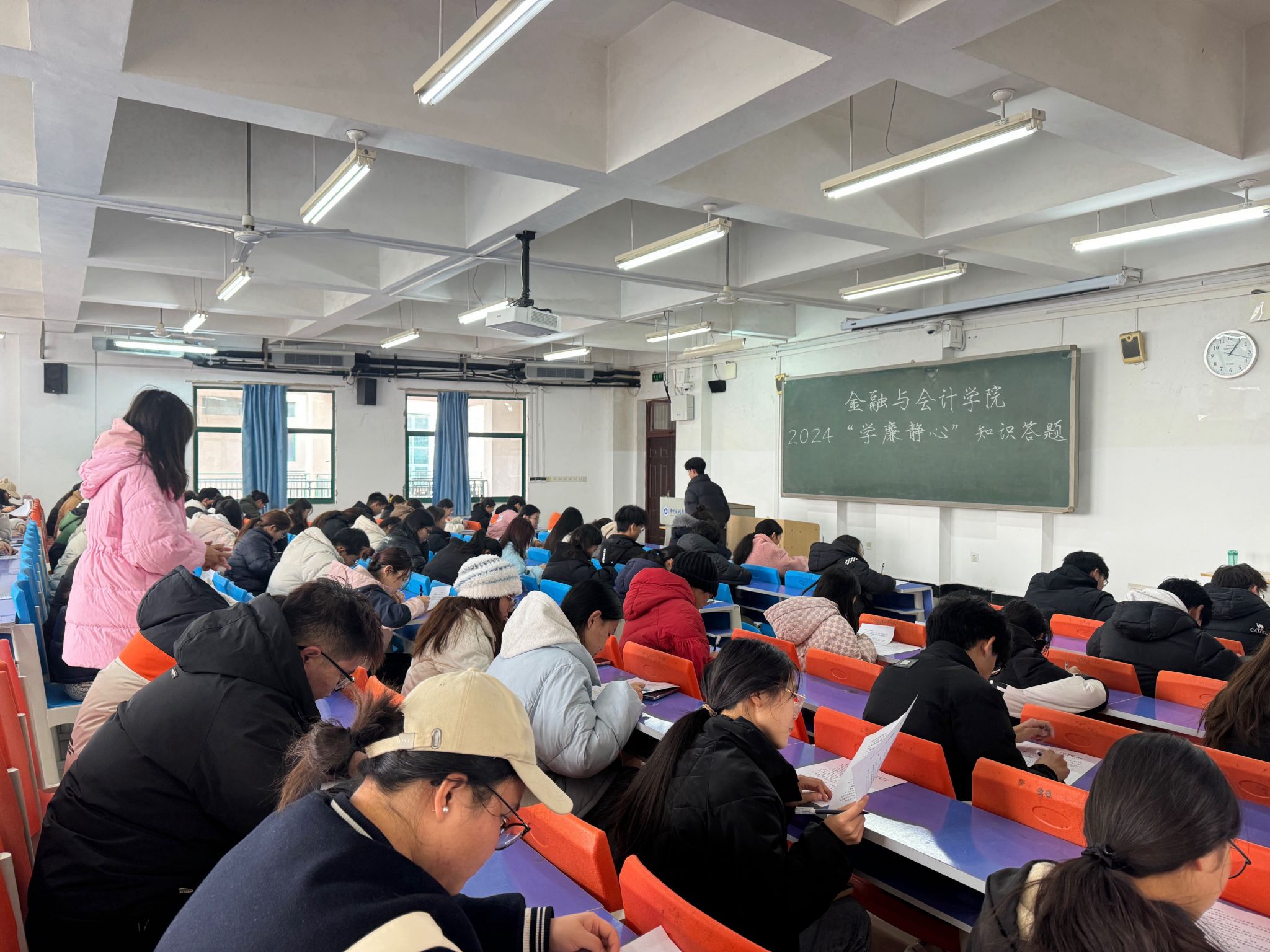 为扎实推进新时代廉洁文化建设和清廉学校创建工作,营造风清气正、奋发向上的校园廉洁氛围,12月9日中午,金融与会计学院在SY2402教室开展“学廉净心”知识答题活动,学生党员、入党积极分子和学生代表共96人参加此次活动,活动由学生分会监察部主持。