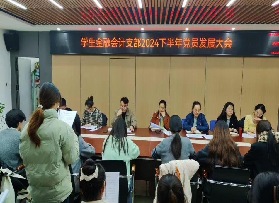 2024年12月6日中午,金融与会计学院学生金融会计支部在SY5412会议室召开2024下半年党员发展大会,支部全体师生党员、党员发展对象参加,会议由支部组织委员徐东亚主持。