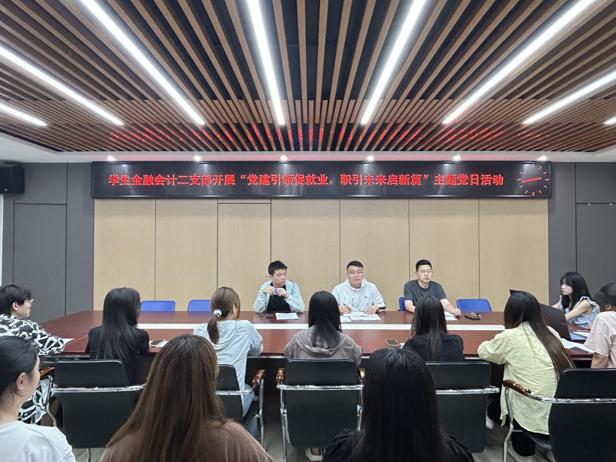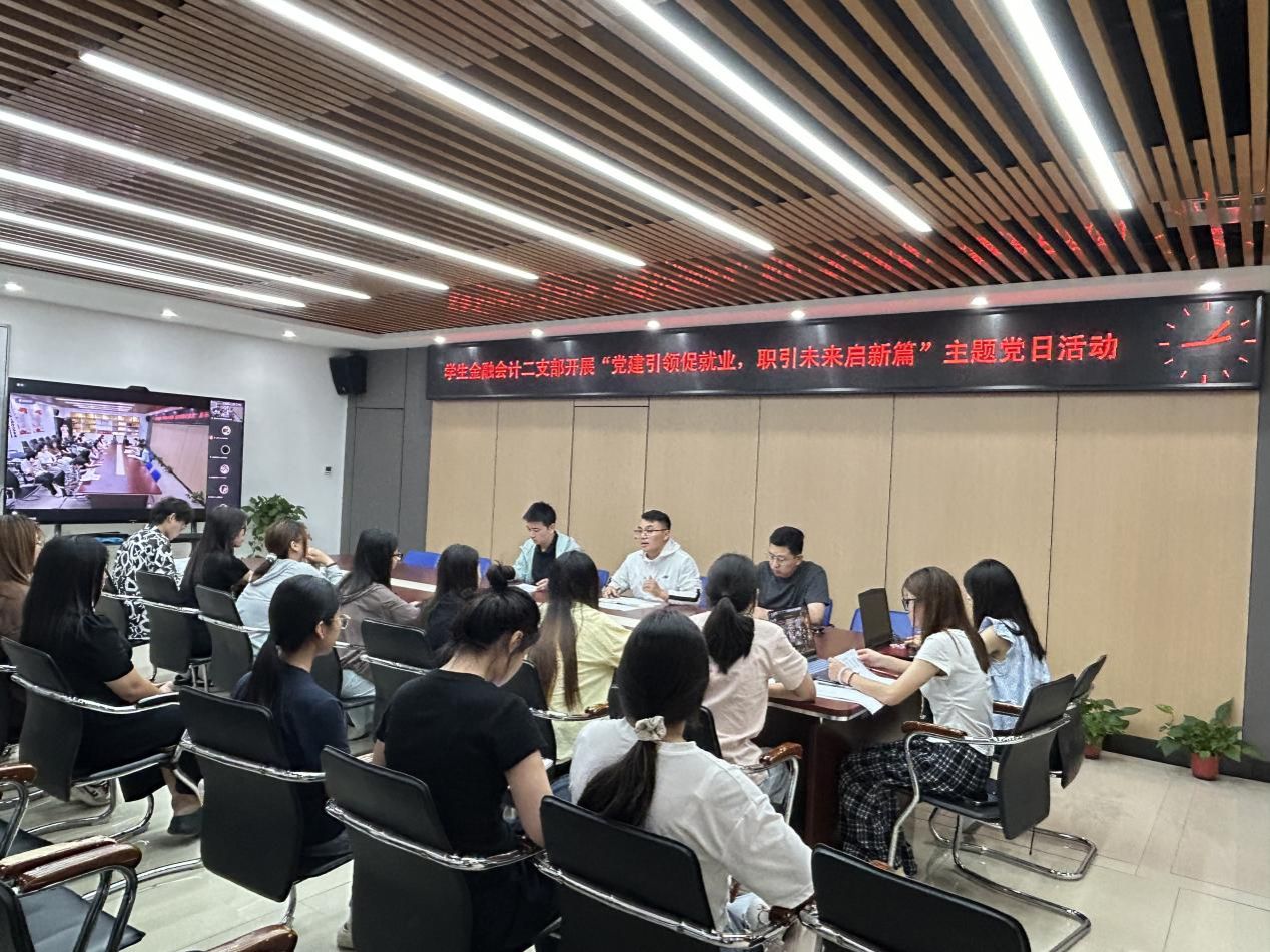 6月18日中午,学生金融会计二支部在SY5412开展“学党建引领促就业,职引未来启新篇”主题党日活动,学生金融会计二支部书记徐东亚、组织委员尹真杰、宣传委员朱命龙、全体在校学生党员和预备党员参加此次活动。