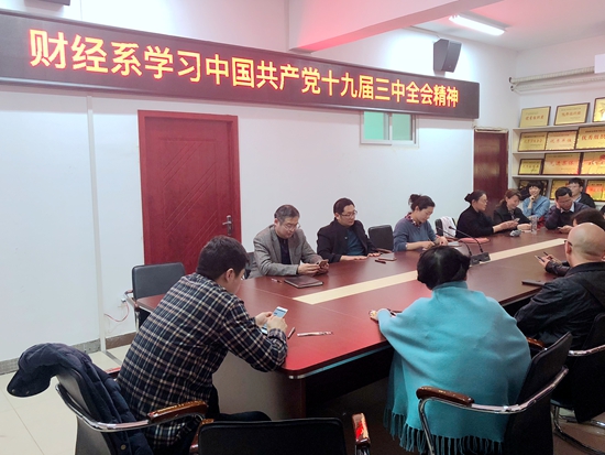 3月13日下午,财经系党总支召开了集中学习党的十九届三中全会精神专题学习会,会议由系党总支书记殷莺主持,系全体教职工参加。