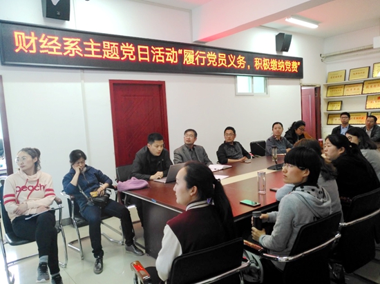 为进一步增强党员的组织观念,规范党费收缴管理工作, 4月17日下午,财经系党总支在系党员会议室SY5412开展“履行党员义务,积极交纳党费”主题党日活动,采用集中学习的形式。会议由教工党支部书记苏永彪主持。