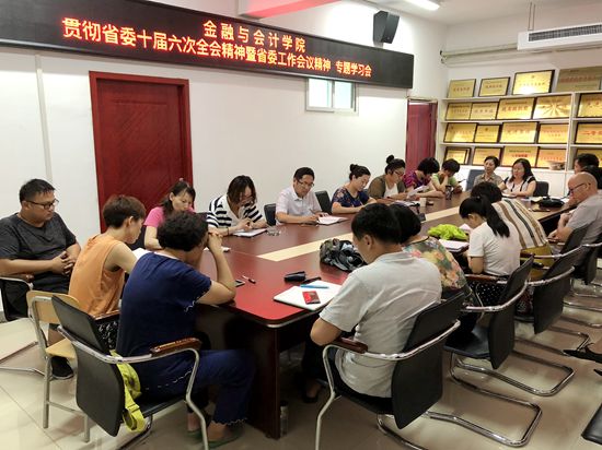 中国共产党河南省第十届委员会第六次全体会议,于2018年6月29日至30日在郑州召开。金融与会计学院党总支通过多种学习方式,对会议精神进行了深入学习研讨。