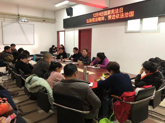 会上,院党总支书记殷莺组织大家重点学习了《宪法》的地位与作用、目的及意义等内容。她要求全体教师要高度重视,深入宣传宪法、中国特色社会主义法律体系和党章党规、学习宣传习近平总书记关于法治建设的系列讲话精神以及相关法律法规,增强依法执教的意识,切实履行法律赋予教师的职责。