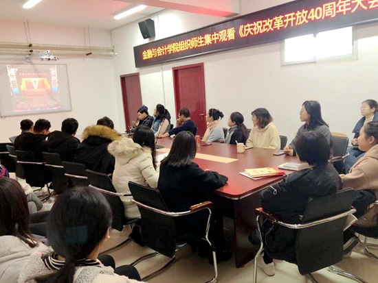 12月18日上午10时,中共中央、国务院在人民大会堂召开了庆祝改革开放40周年大会。为第一时间了解大会盛况,让师生更好地认识我们党的改革开放路线方针政策和取得的成绩,金融与会计学院党总支组织师生40余人在院会议室集中观看直播。