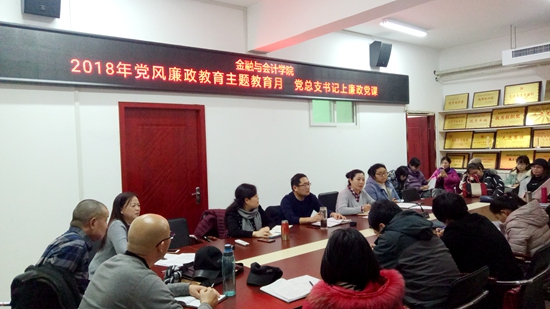 党课上,院党总支书记殷莺阐述了十八大以来,党中央反腐败斗争取得新成绩,十九大后,党中央对反腐败斗争的坚强决心;列举了教师职业道德问题典型案例、省内部分高校领导干部违纪违法典型案例,并深入分析了我院各岗位工作存在的廉政风险点。