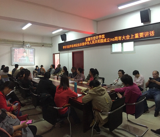10月8日下午,我院在SY5412会议室召开习近平在中华人民共和国成立70周年大会重要讲话专题学习会,全体教职工参加学习。会议由院党总支书记殷莺主持。