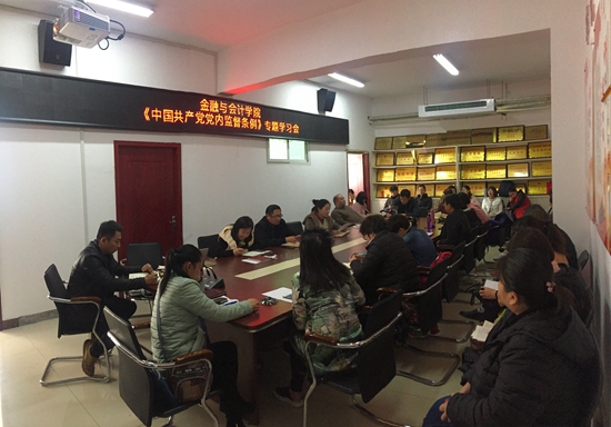 11月19日下午,金融与会计学院在SY5412会议室召开《中国共产党党内监督条例》专题学习会,全体党员、教职工参加。会议由院长宋建涛主持。