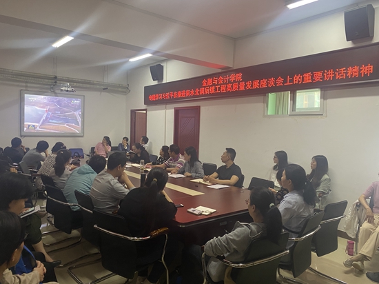 5月18日下午,金融与会计学院在SY5412会议室专题学习了总书记的重要讲话精神,全体教职工纷纷表示,要深刻领会总书记讲话精神,认真做好各项工作,为南水北调后续工程高质量发展,为黄河流域生态保护和高质量发展输送更多优秀的人才,以优异成绩庆祝中国共产党成立100周年。