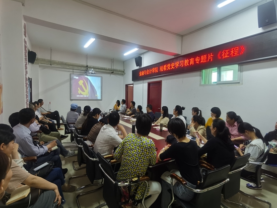5月25日下午,金融与会计学院在SY5412会议室召开党史学习教育专题学习会,集中观看党史学习教育专题片《征程》,全体教职工参加。学习会由院长宋建涛主持。