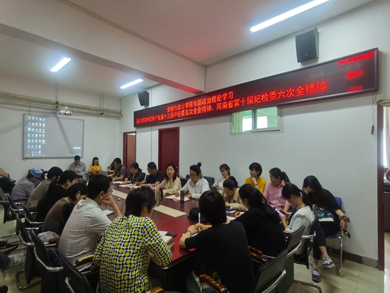 5月25日下午,金融与会计学院在SY5412会议室召开专题政治理论学习会,会议深入学习贯彻中国共产党第十九届中纪委五次全会精神,河南省第十届纪检委六次全精神,全体教职工参加。学习会由院长宋建涛主持。