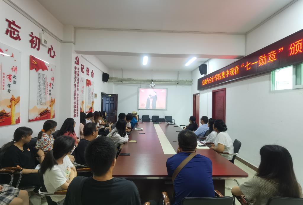 6月29日上午,金融与会计学院在SY5412会议室召开专题学习会,集中观看“七一勋章”颁授仪式直播。院领导班子全体成员带领师生代表参加。