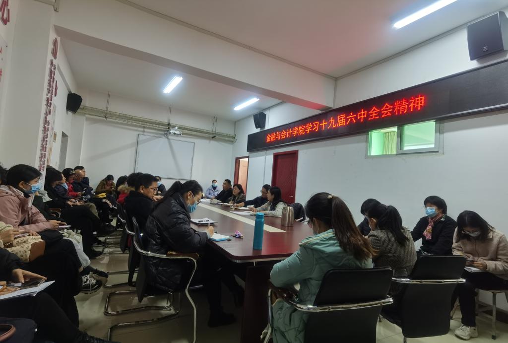 11月9日下午,金融与会计学院在SY5412会议室召开专题学习会,学习中国共产党第十九届中央委员会第六次全体会议精神,全体党员、教职工参加会议。会议由院长宋建涛主持。