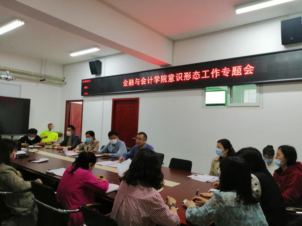 4月26日下午,金融与会计学院在SY5412会议室召开意识形态工作主题学习会,全体教职工参加会议,会议由院长李冠军主持。