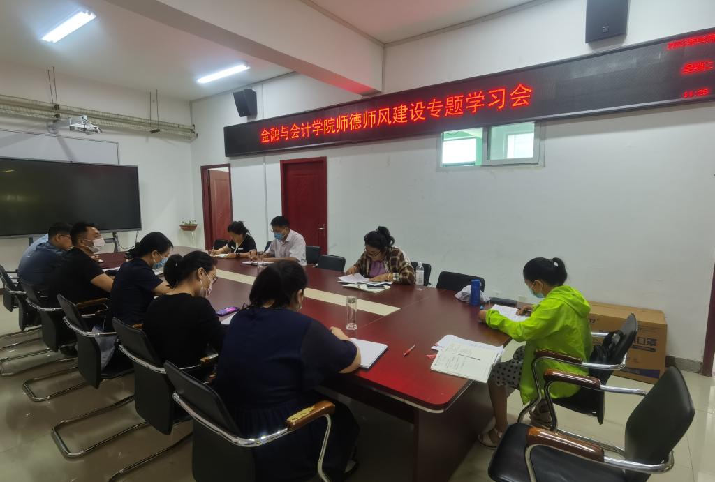 6月7日上午,金融与会计学院在SY5412会议室召开师德师风建设专题学习会,全体科级以上干部参加,学习会由院长李冠军主持。
