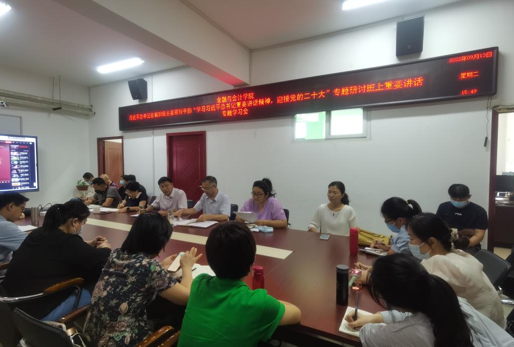 9月13日下午,金融与会计学院在SY5412会议室召开政治理论专题学习会,全体教职工参加会议。会议由党总支书记吴宗奎主持。