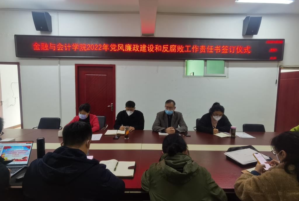 金融与会计学院组织签订《2022年党风廉政建设和反腐败工作责任书》