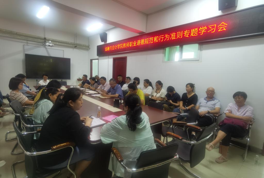 912日下午,金融与会计学院在SY512会议室召开师德师风专题学习会,集中学习习近平致全国优秀教师代表的信、2023年全国教书育人楷模先进事迹、教育部曝光违反教师职业行为十项准则典型案例(第十一批)、《新时代高校教师职业行为十项准则》,全体教职工参加。会议由院长李冠军主持。