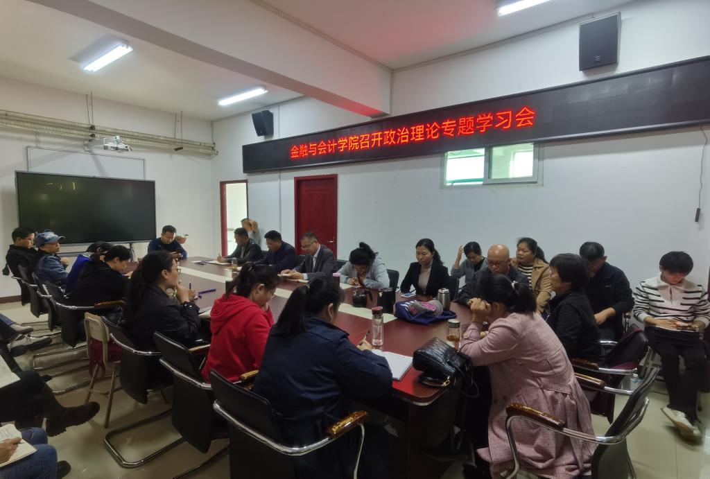 117日下午,金融与会计学院在SY5412会议室召开政治理论学习会,专题学习《中华人民共和国公职人员政务处分法》《黄河水利职业技术学院纪检监察监督事项备案暂行办法》,全院教职工参加,会议由院长李冠军主持。