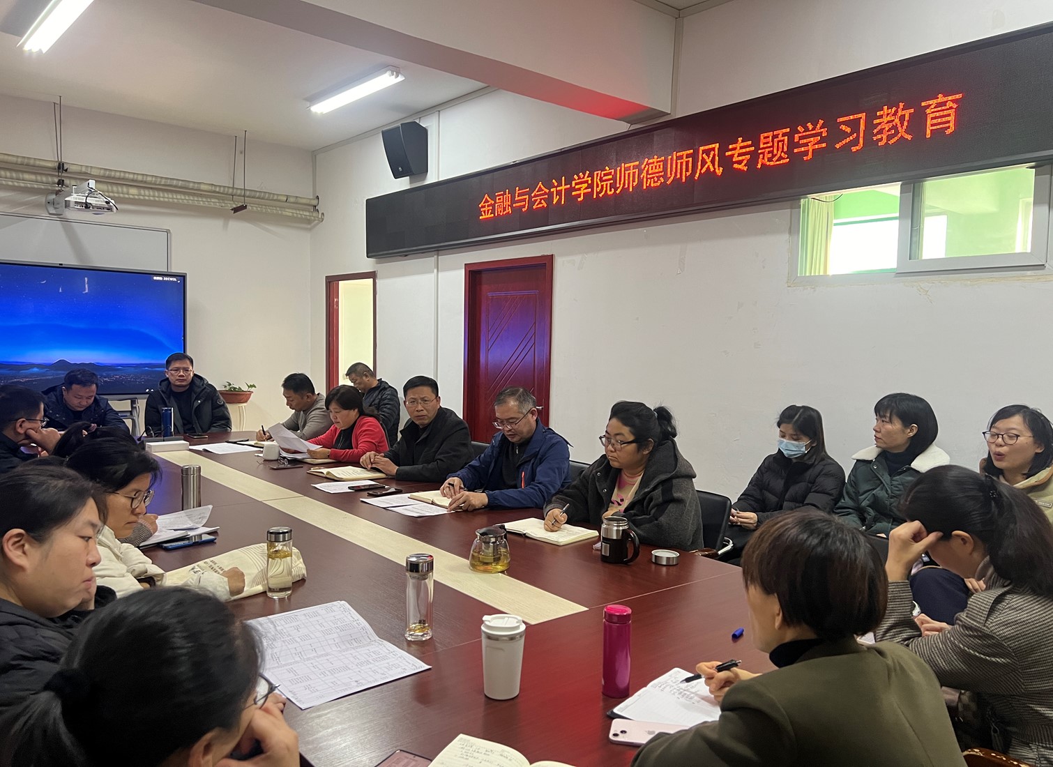 11月14日,金融与会计学院组织开展师德师风学习教育活动,全体教职工参加,活动由党总支书记吴宗奎主持。